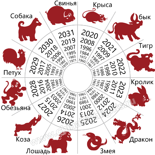 В китайской системе каждый год находится под покровительством не только зодиакального животного, но и одной из пяти стихий — Дерева, Огня, Земли, Металла и Воды.