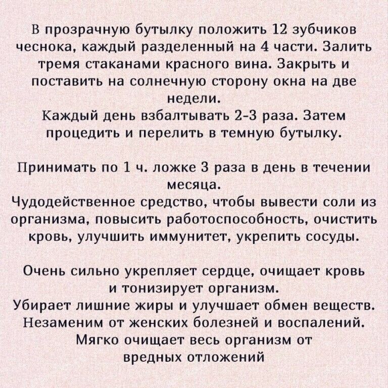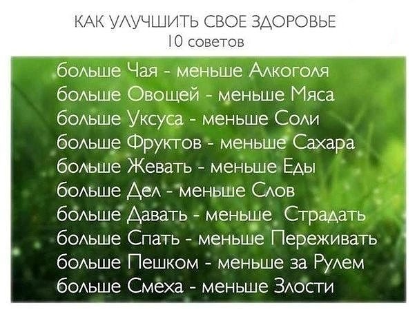 Вот здорово! Даже себе выписала и поставила бумажку на столе. Так же всем своим болящим пожилым родственникам написала и раздала.