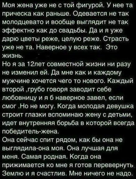 Надеюсь, вы уже поняли, что я хочу сказать. Среди моего окружения встречаются те, кто постоянно изменяет женам, кто изменяет одноразово и те, кто о таком даже не думает.