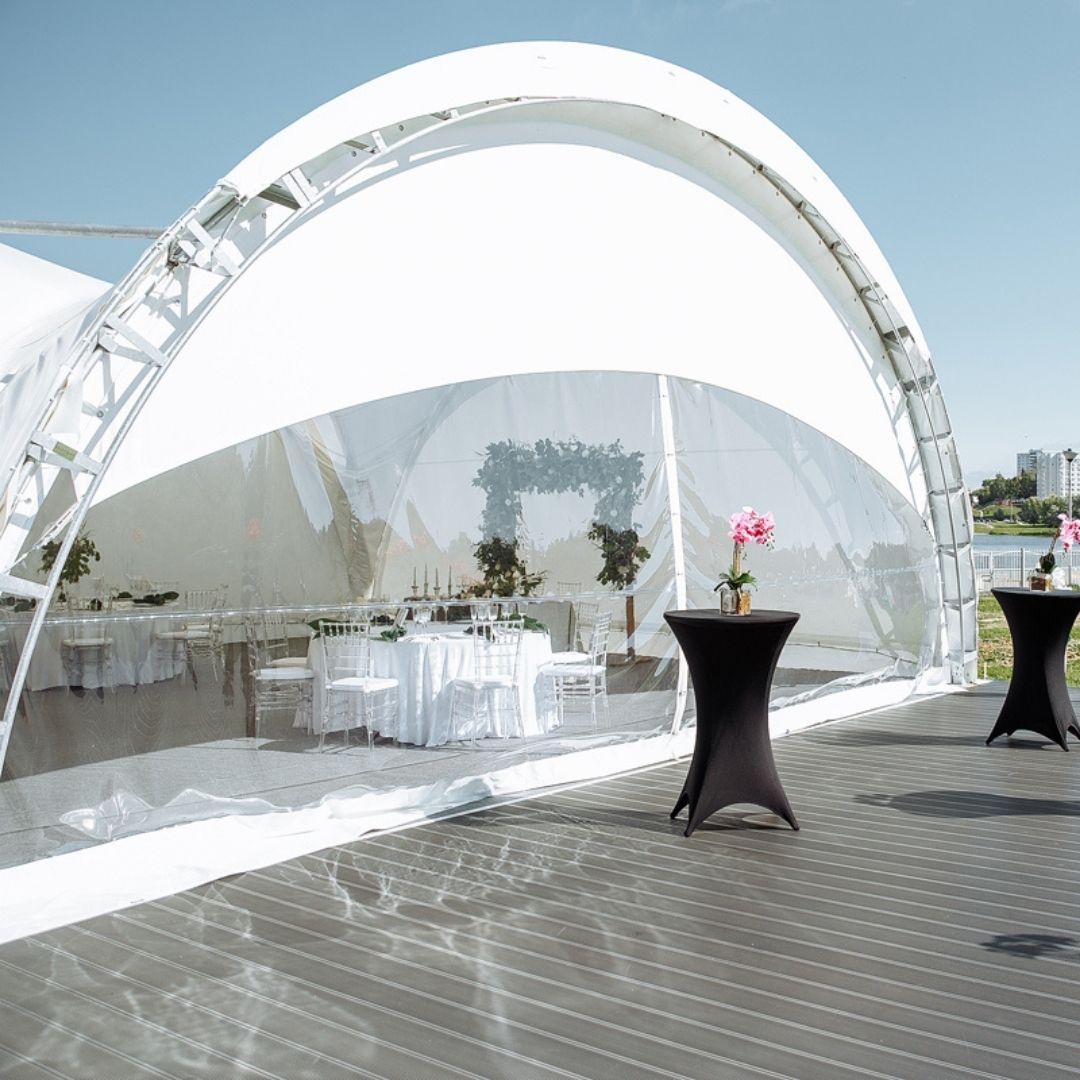 На территории развлекательного центра «Солнечная долина» располагается стильный белоснежный шатёр, который идеально подходит для ивентов любого формата.