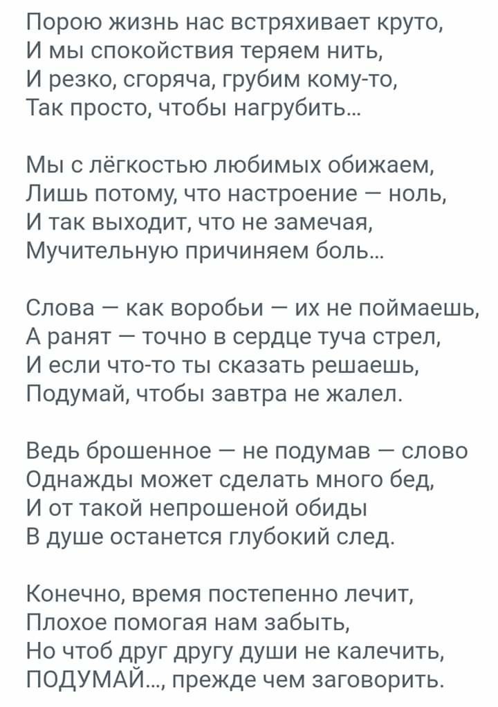 Прочитайте внимательно стихотворение. Вот что может испортить отношения - слово!